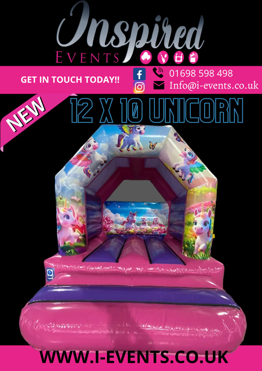 Introduce the 12'x10' Unicorn Bouncy Castle to your next party. Bright unicorn graphics and pastel colors create instant excitement. This compact castle delivers big fun for kids. It’s built for safety, easy setup, and reliable bouncing. Perfect for backyard parties, school fairs, and small event rentals. 🌈✨