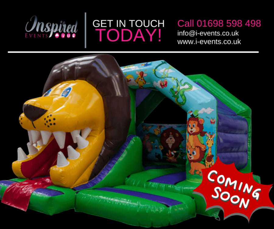 NEW FOR 2023 Our 3D Lion slide combination bouncy castle is extremely popular at Children's Parties and occasions of any kind. With a large bouncing area with reinforced seams it's suitable for up to 5 Children. The front of the castle features the Animal theme along with featured on the back wall.