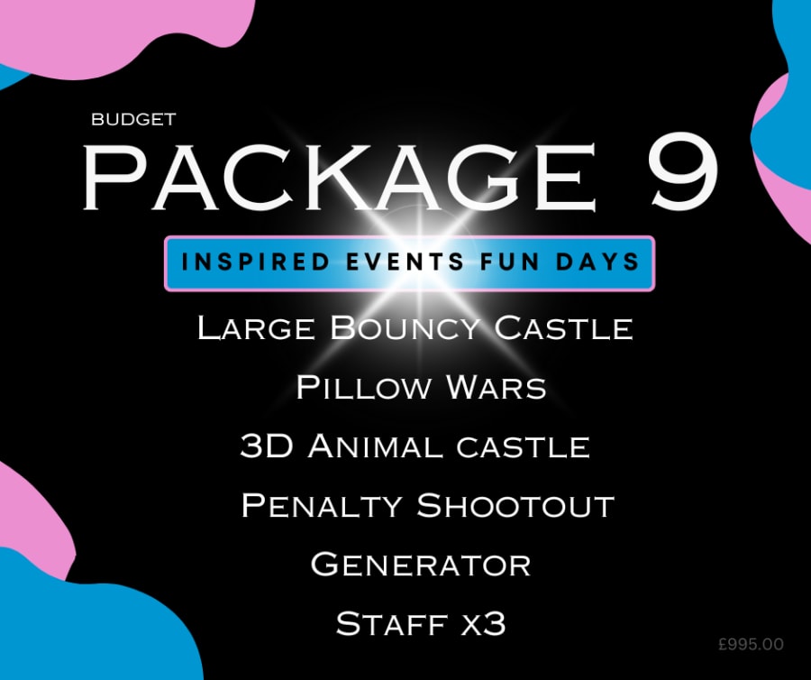 Looking to make your next event unforgettable without breaking the bank? Discover the ultimate solution with our Saver Package 9. Specially designed for smaller gatherings, this package includes a variety of fun inflatables, ensuring your event stands out in the best way possible. Whether it's a school fete, a P7 leaver's party, or any other celebration, this package is perfect for creating endless fun on a budget.